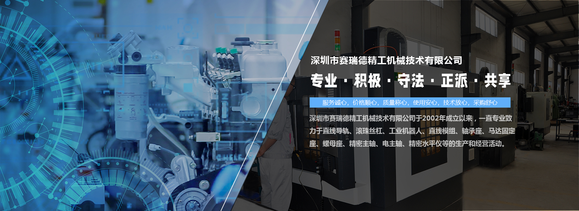 深圳市賽瑞德精工機(jī)械技術(shù)有限公司于2002年成立以來(lái),一直專(zhuān)業(yè)致力于直線(xiàn)導(dǎo)軌、滾珠絲杠、工業(yè)機(jī)器人、直線(xiàn)模組、軸承座、馬達(dá)固定座、螺母座、精密主軸、電主軸、精密水平儀等的生產(chǎn)和經(jīng)營(yíng)活動(dòng)。