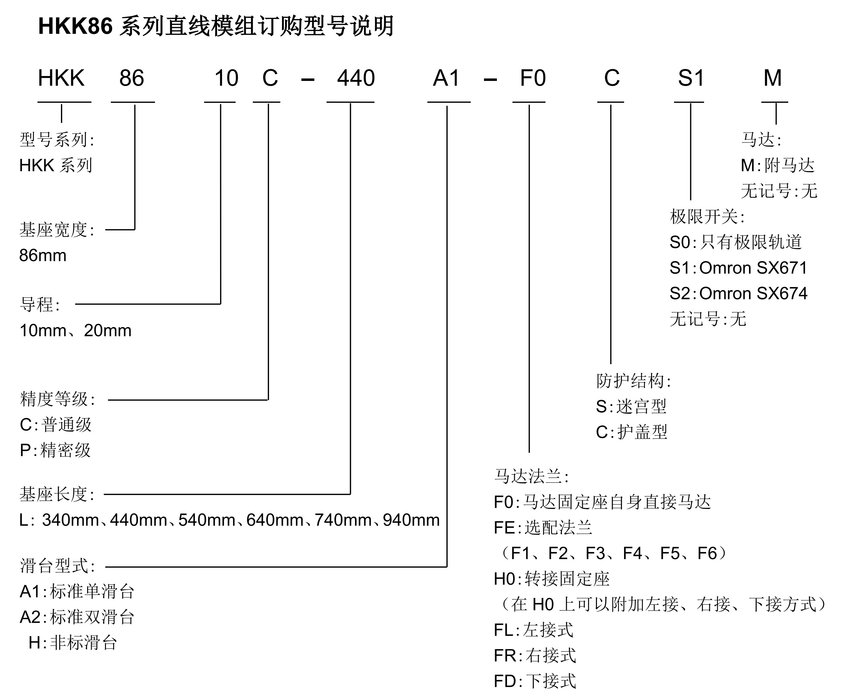 公司專(zhuān)業(yè)生產(chǎn)的線(xiàn)性模組(直線(xiàn)模組,直線(xiàn)滑臺(tái)),安裝尺寸國(guó)際通用,精選臺(tái)灣進(jìn)口上銀滾動(dòng)直線(xiàn)導(dǎo)軌和TBI滾珠絲杠搭建,質(zhì)量?jī)?yōu),供貨快。HKK系列線(xiàn)性模組為鋼基座,寬度范圍40mm到130mm,承載能力遠(yuǎn)遠(yuǎn)超出臺(tái)灣上銀KK系列,PMI之KM系列,日本THK之KR/SKR等同尺寸替代線(xiàn)性模租。HKK86系列標(biāo)準(zhǔn)長(zhǎng)度有340、440、540、640、740、940。