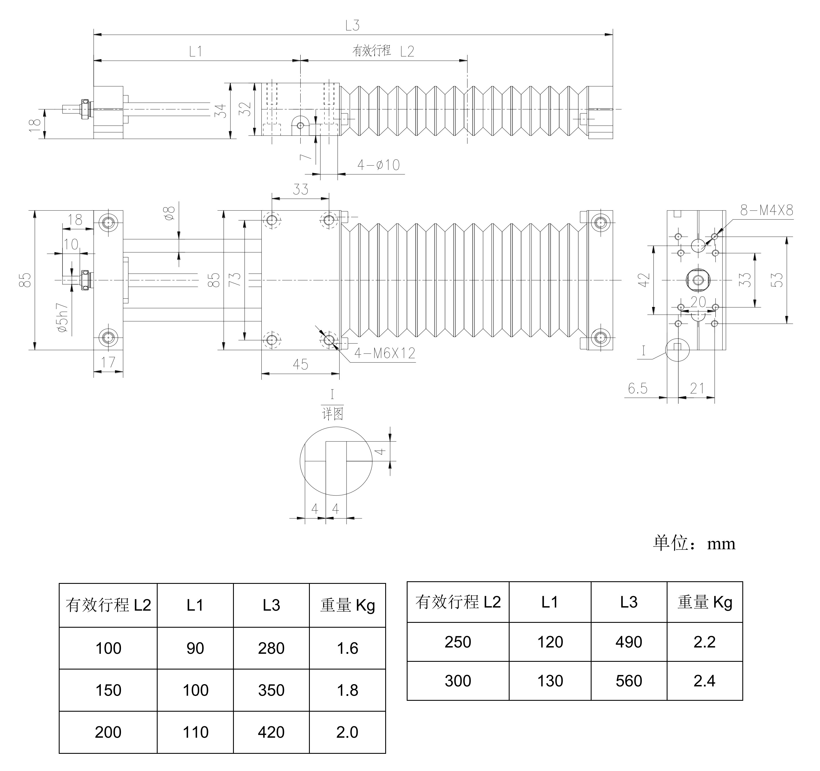 公司專業(yè)生產(chǎn)的線性模組(直線模組,直線滑臺(tái)),安裝尺寸國(guó)際通用,精選臺(tái)灣進(jìn)口上銀滾動(dòng)直線導(dǎo)軌和TBI滾珠絲杠搭建,質(zhì)量?jī)?yōu),供貨快。TKC系列線性模組使用直線軸承導(dǎo)向,經(jīng)濟(jì)型,可以實(shí)現(xiàn)完全密封。光軸范圍8mm到60mm,絲杠傳動(dòng),完全替代德國(guó)力士樂(lè)SGK系列線性滑臺(tái)。TKC08直線模組有效行程:100、150、200、250、300。
