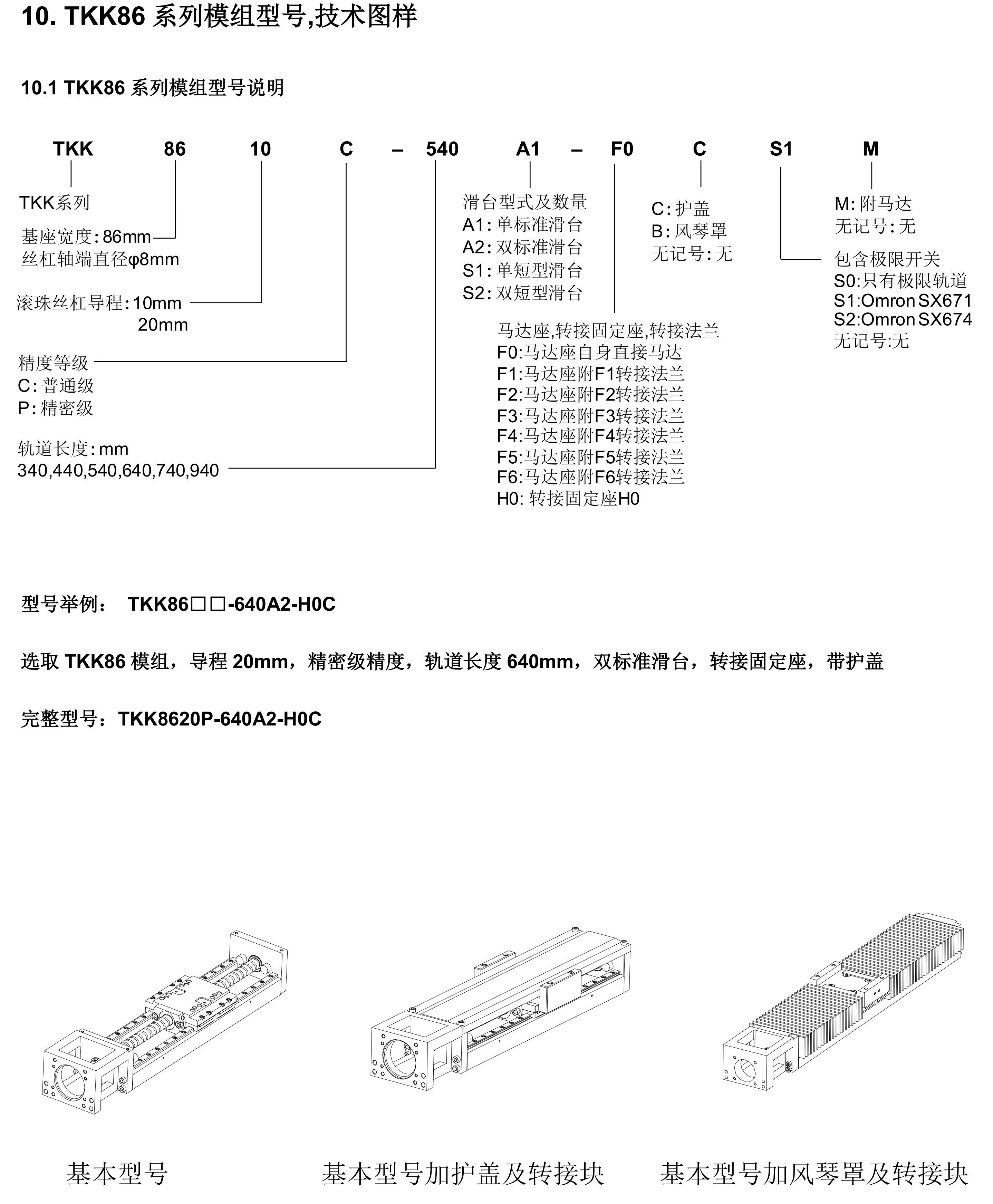 TKK系列線性模組為鋁制基座,寬度范圍40mm到130mm,可完全替代臺灣上銀KK系列,PMI之KM系列,日本THK之KR/SKR等線性模,整體重量更輕。TKK86系列軌道長度:340、440、540、640、740、940。