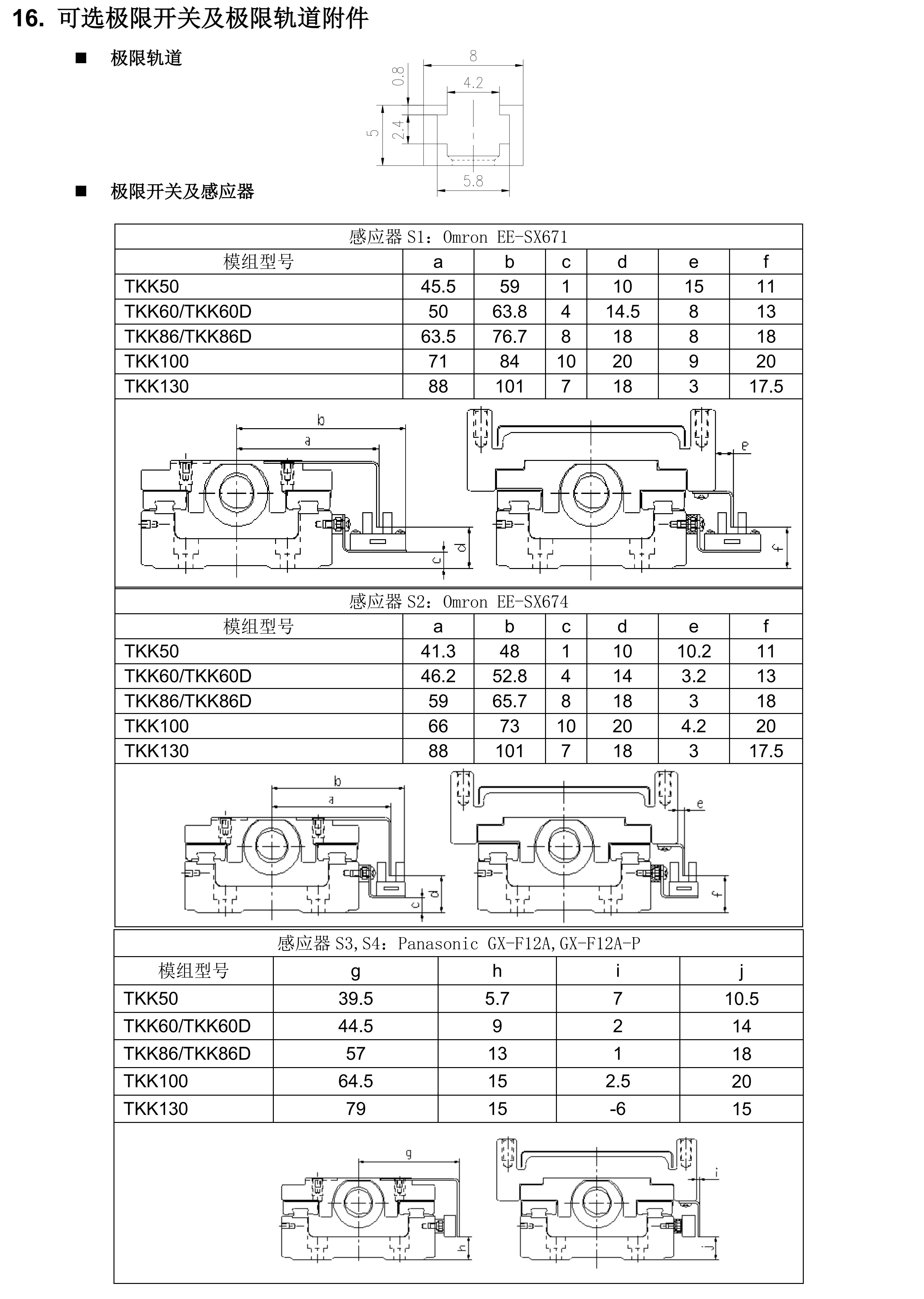 TKK系列線性模組為鋁制基座,寬度范圍40mm到130mm,可完全替代臺灣上銀KK系列,PMI之KM系列,日本THK之KR/SKR等線性模,整體重量更輕。TKK100系列軌道長度:680、780、880、980、1080、1180、1280、1380、1480、1580、1680。