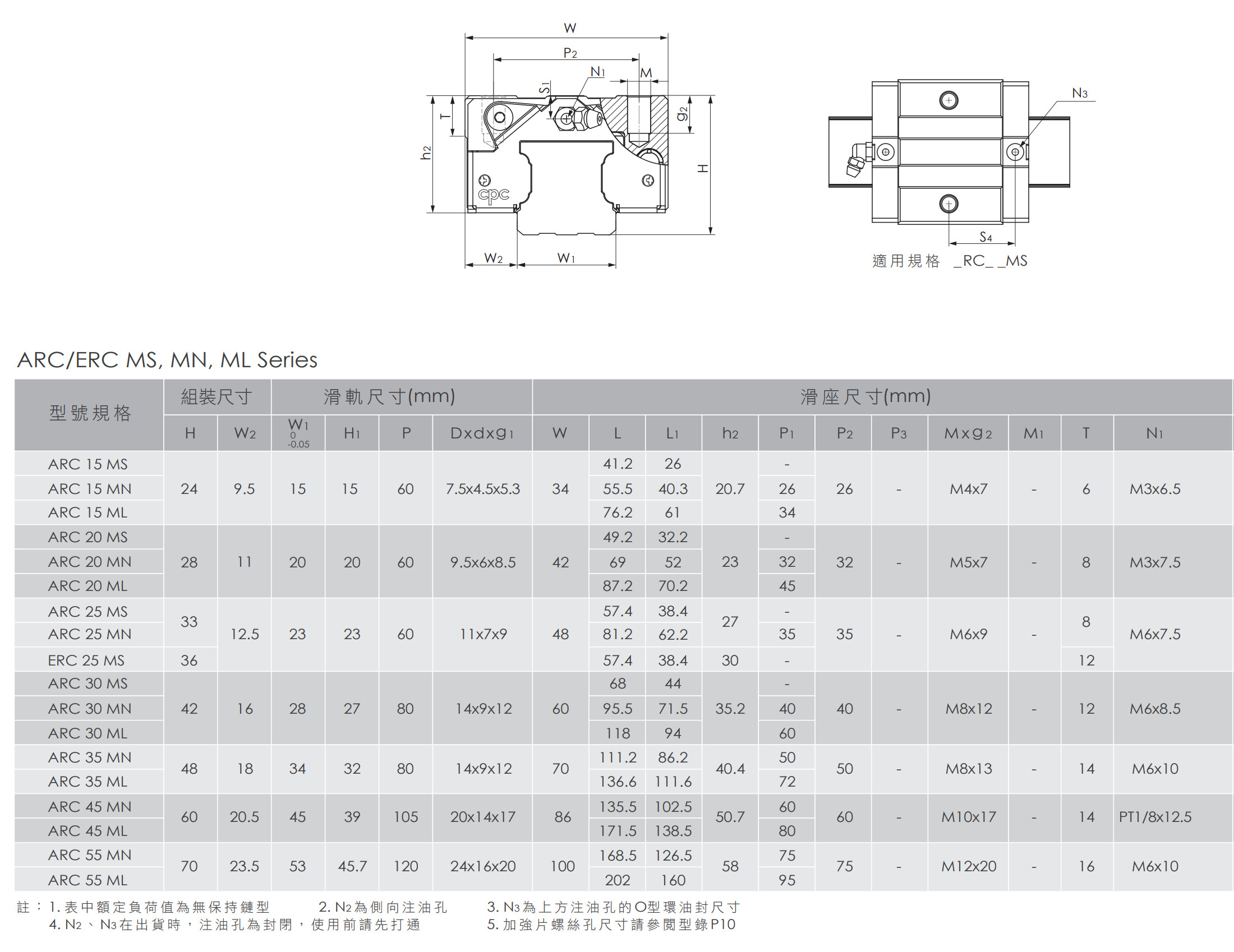 直得-cpc-ARC系列 MS-MN-ML重載型直線導(dǎo)軌