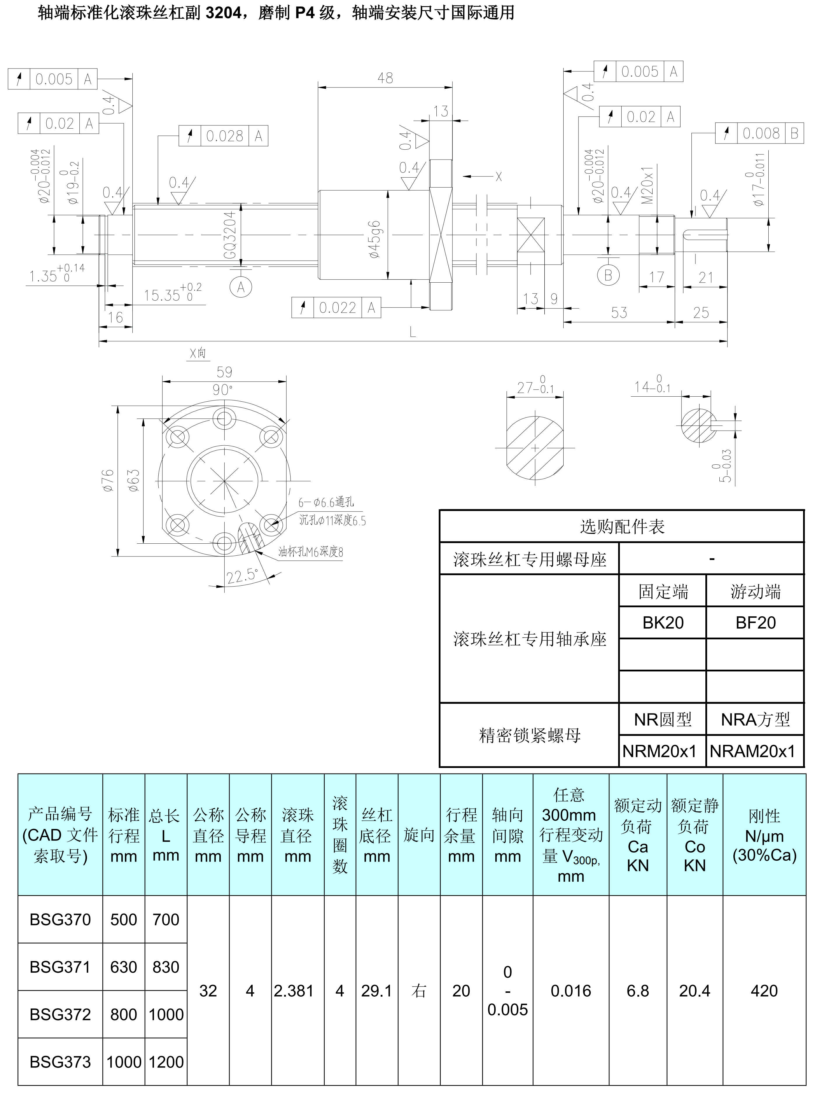 3204軸端標(biāo)準(zhǔn)化磨制P4級(jí)滾珠絲杠副2D圖檔