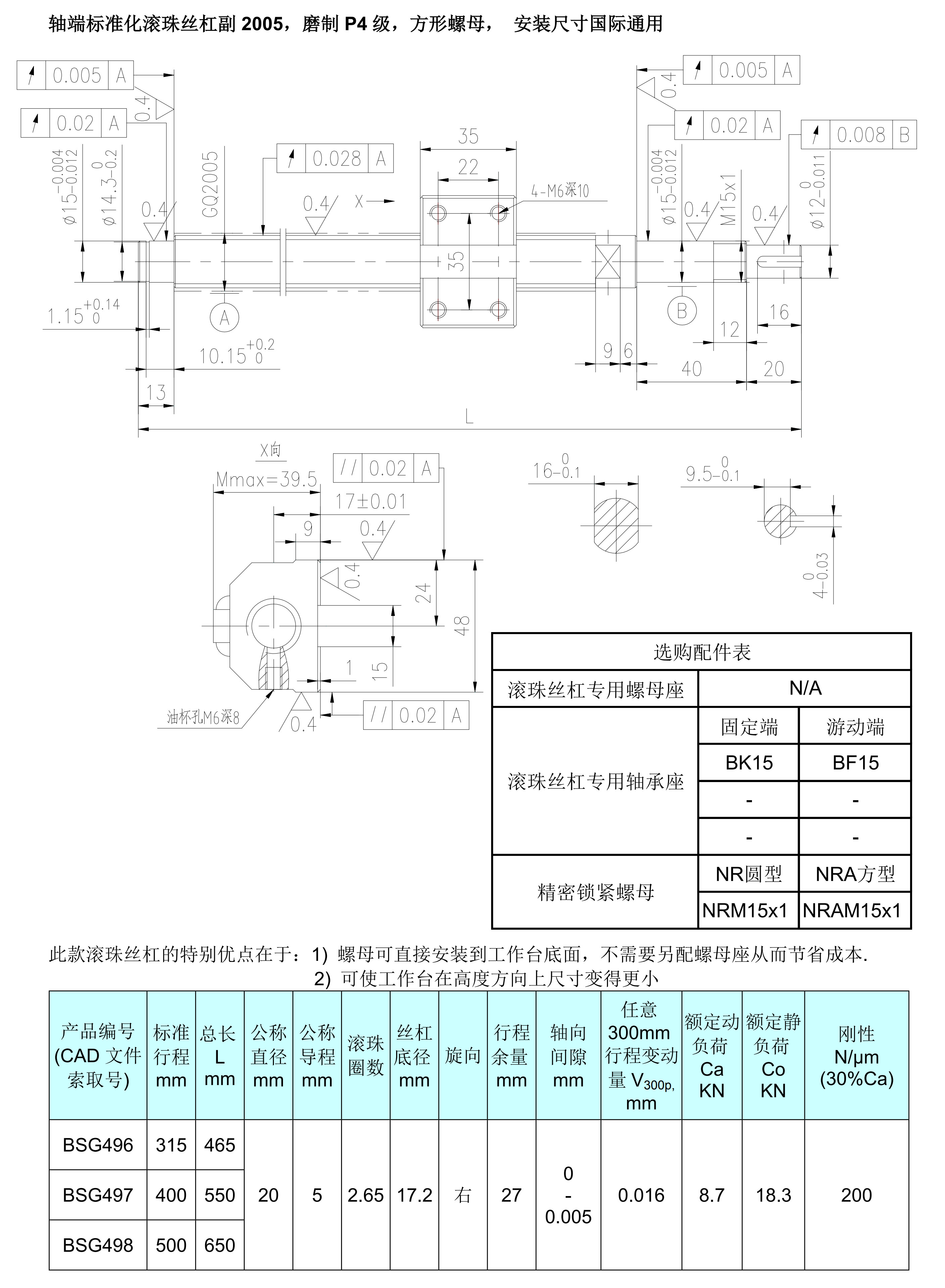 2005方形螺母,軸端標(biāo)準(zhǔn)化磨制P4級滾珠絲杠副