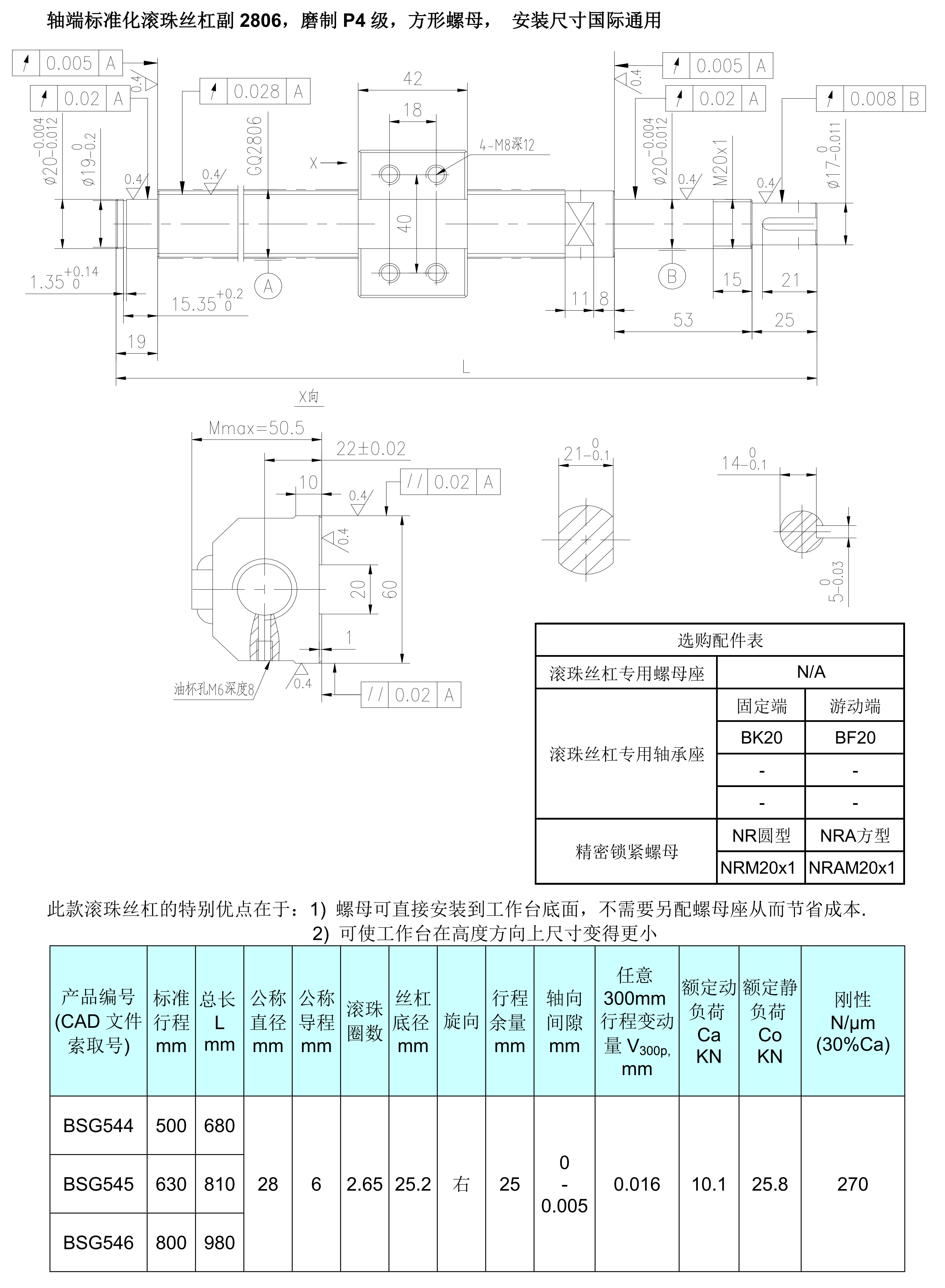 2806方形螺母,軸端標(biāo)準(zhǔn)化磨制P4級滾珠絲杠副2D圖檔